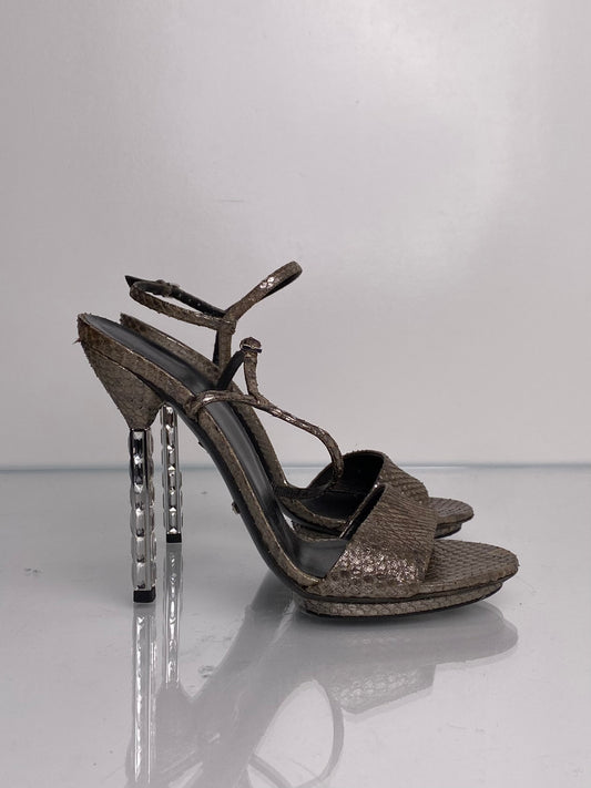 Gucci Silver Metallic Python & Crystal Heels, 38.5