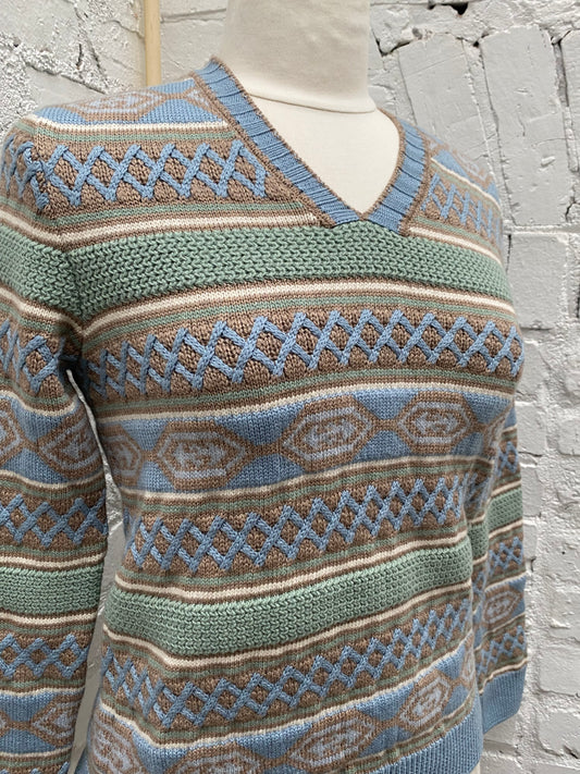 Gucci Kids Green/Blue/Tan GG Striped Pullover, 10Y