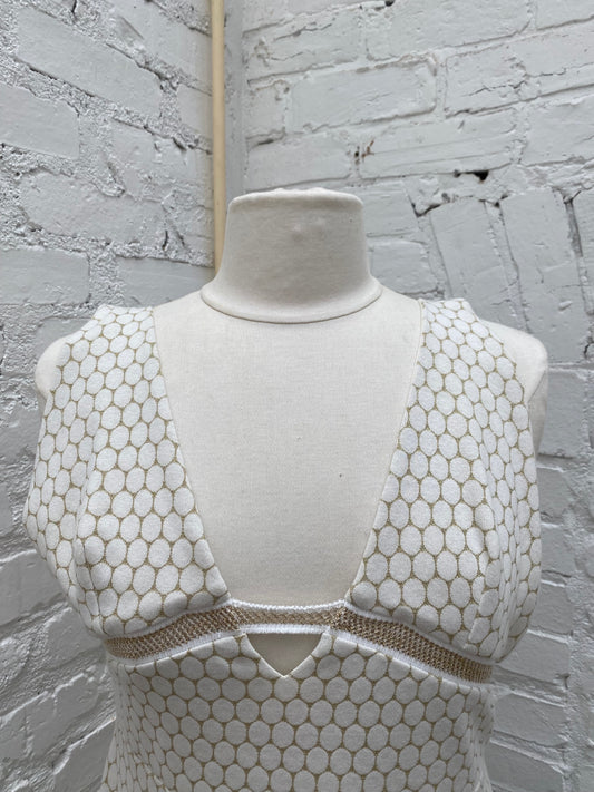 Adriana Iglesias White Circles & Gold Sparkles Dress, 40