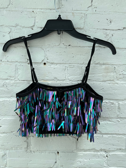 House of Harlow Black, Blue & Purple Sequin Crop Top, XS