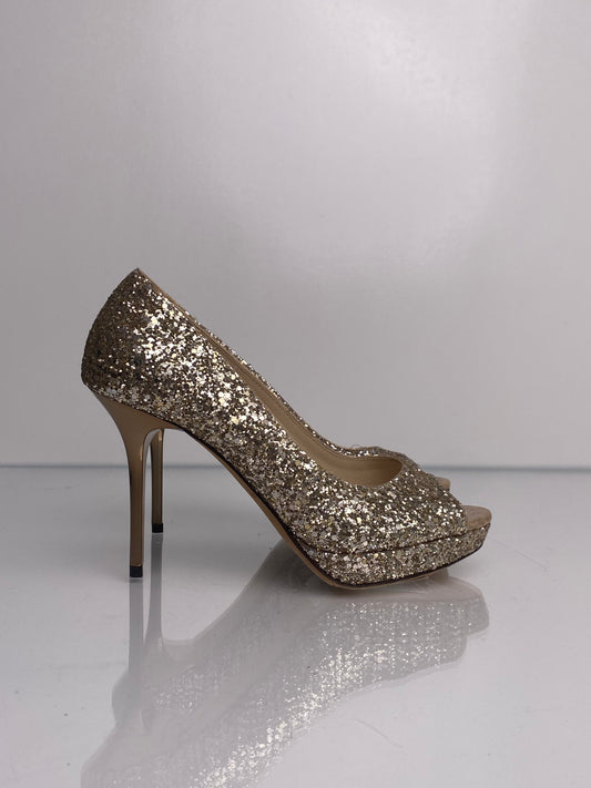 Jimmy Choo Gold & Silver Sequin Wedges, 37