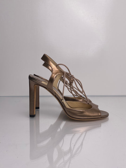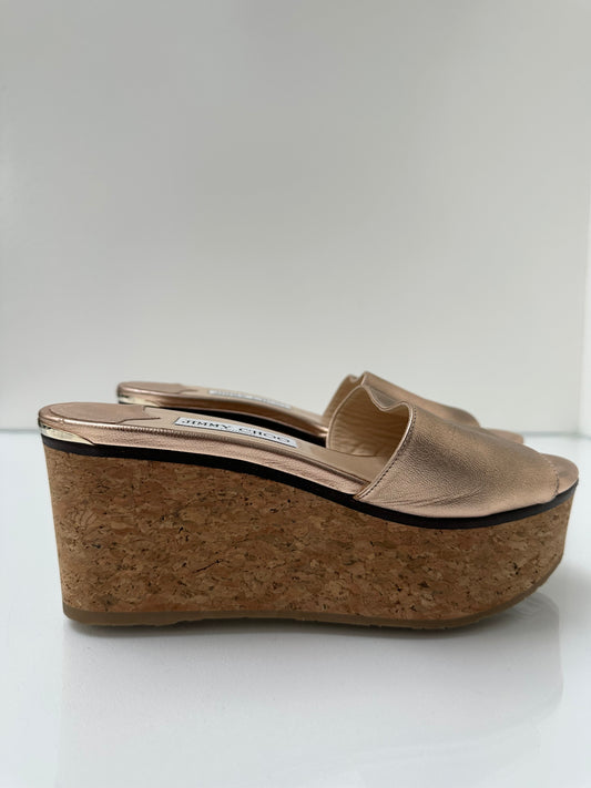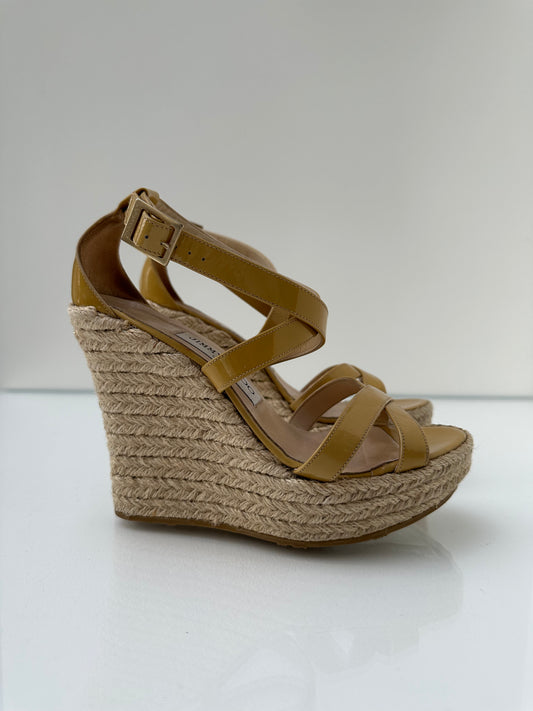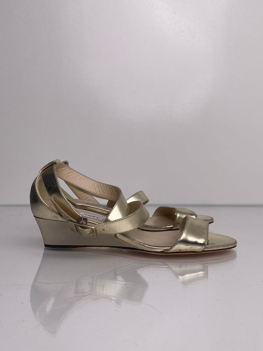 Jimmy Choo Light Gold Mini Cross Strap Wedges, 37.5