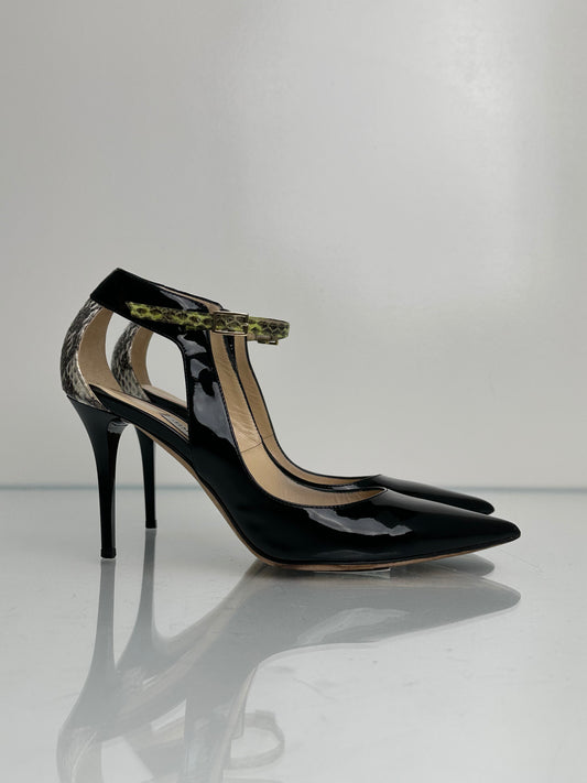 Jimmy Choo Black Patent & Green Exotic Heels, 36.5