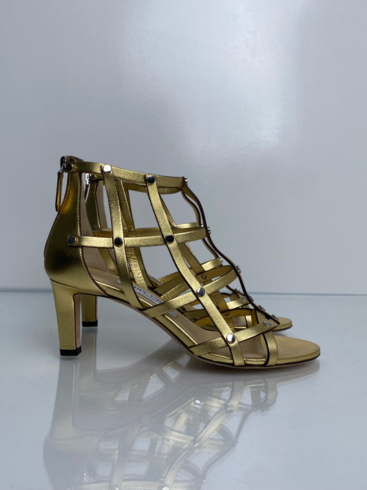 Jimmy Choo Gold Studded Gladiator Heels, 36