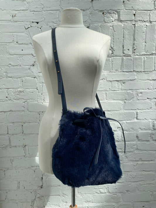 Mansur Gavriel Navy Faux Fur Crossbody Bucket Bag