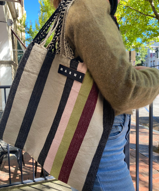 Marni Cream, Black, Burgundy, & Multicolor Striped Tote Bag