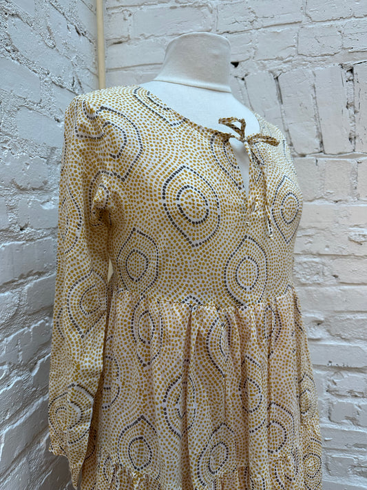 Malabar Baby Yellow & Grey Dot Dress, XS/S
