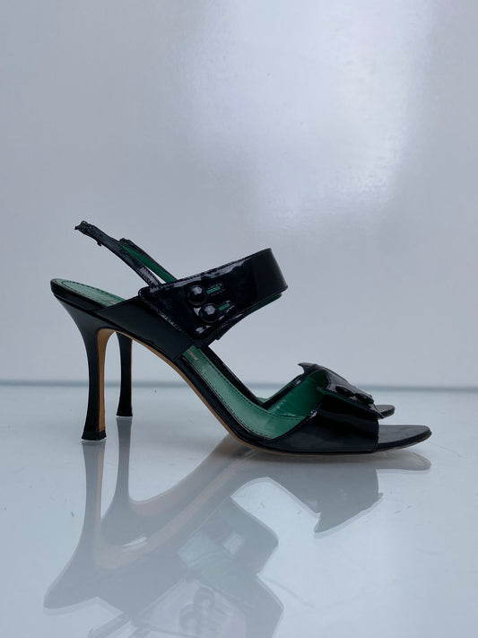 Manolo Blahnik Black Patent Strappy Heels, 39