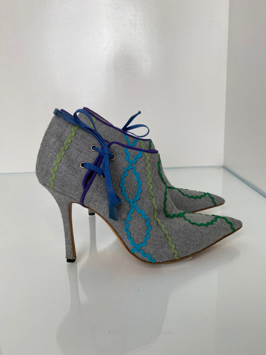Manolo Blahnik Black Patent Pointed Toe Heels, 38.5