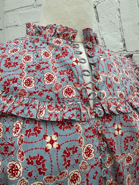 Olivia James Blue & Orange Paisley Long Sleeve Top, XS