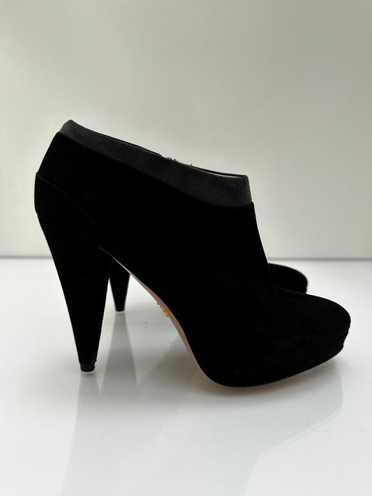 Prada Black Suede Booties, Sz 36