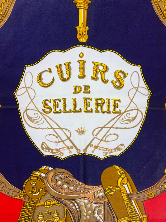 Pierre Baccara ‘Cuirs de Sellerie’ Navy, Red & Gold Silk Scarf