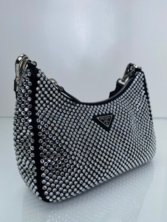 Prada Black & Crystal Re-Edition 2005 Crossbody Bag SHW