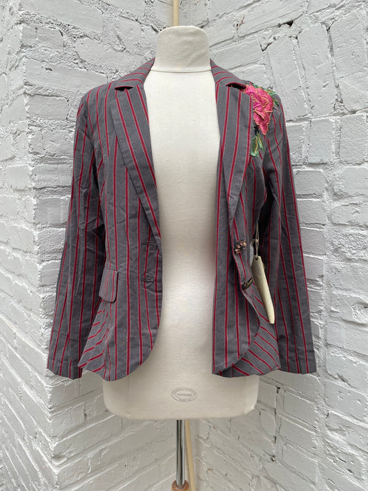 Aratta Silent Journey Burgundy & Gray Striped Blazer, M
