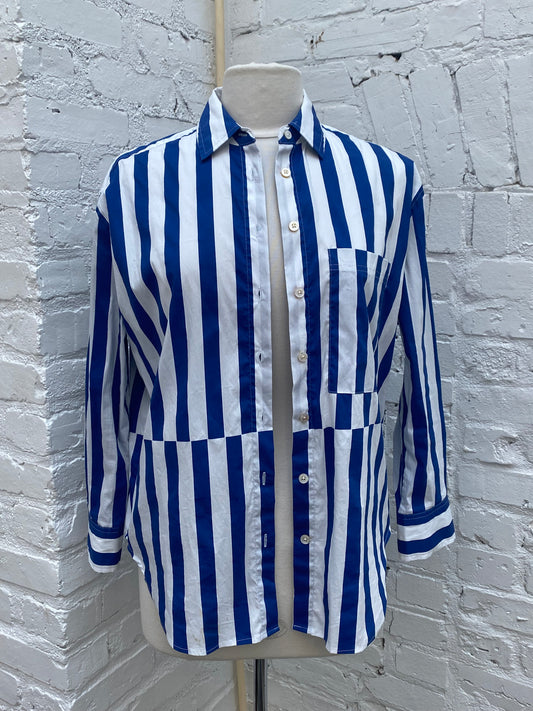 AYR Blue & White Striped Long-Sleeve Button Up, XS