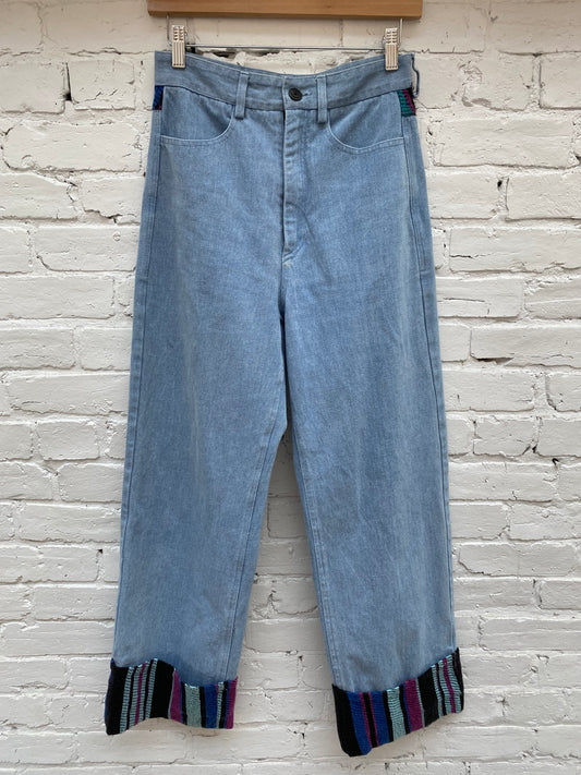 Benjamin Benmoyal Light Wash Black, Blue & Pink Jeans, 28
