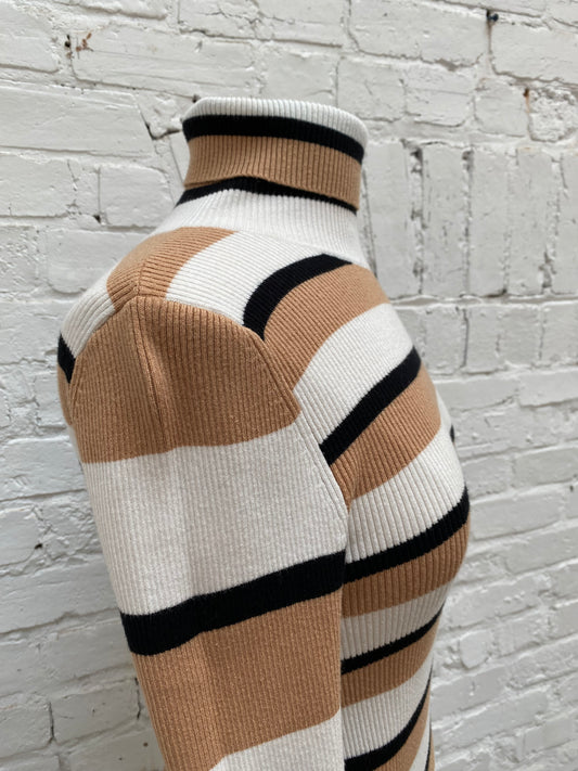 Anthropologie White, Black & Tan Cropped Turtleneck Sweater, M