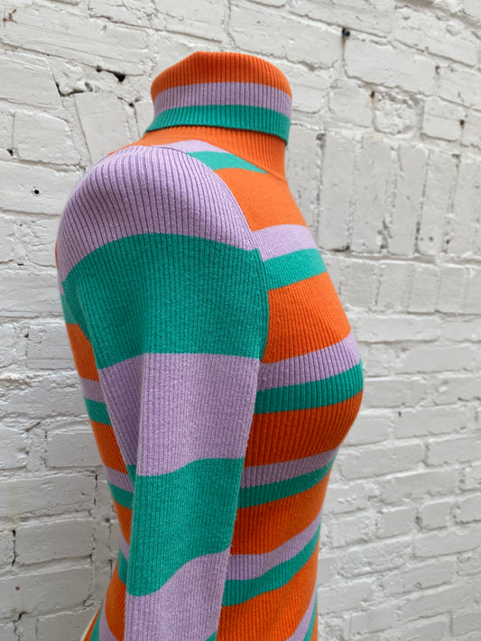 Anthropologie Orange, Teal & Purple Ribbed Turtleneck Sweater, S