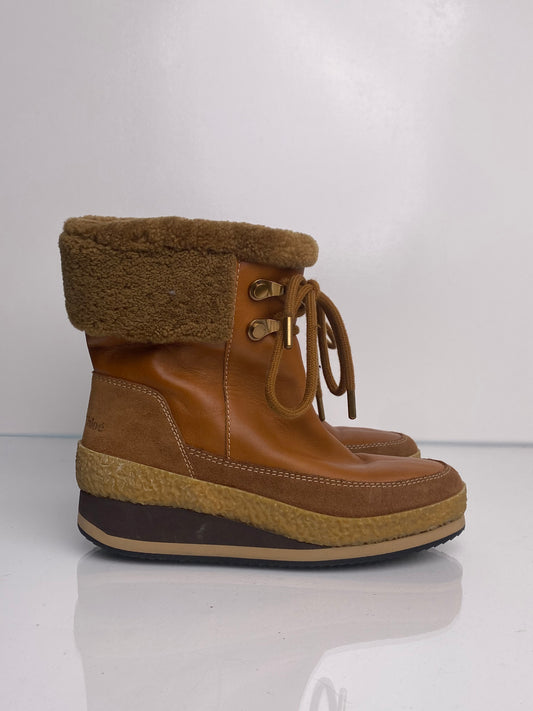 SeeByChloe Tan Sherpa Leather Boots, 38