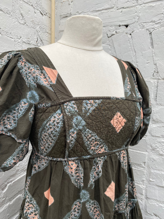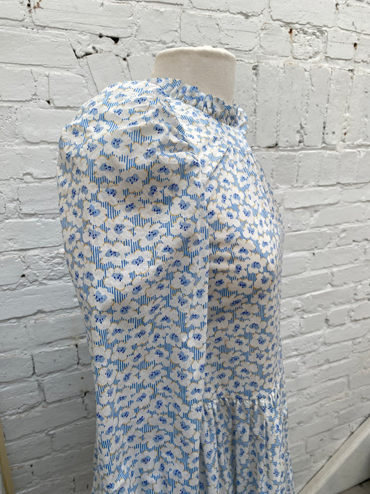 Ulla Johnson Cream, Peach & Navy Ruffled Dress, S/M