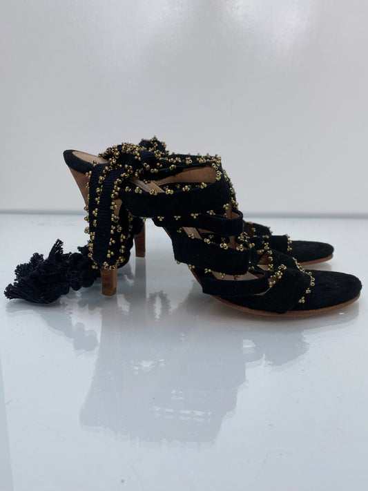 Ulla Johnson Black/Gold Suede Sandals, Size 39