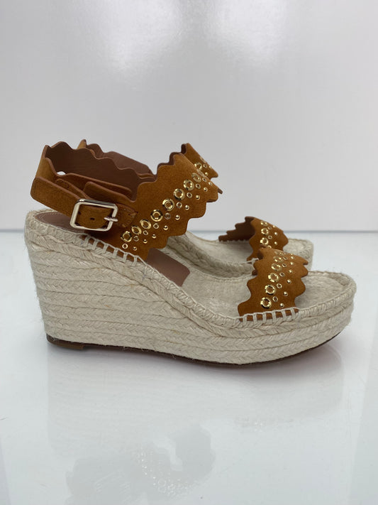 Chloe Brown & Gold Studded Espadrille Wedges, 40