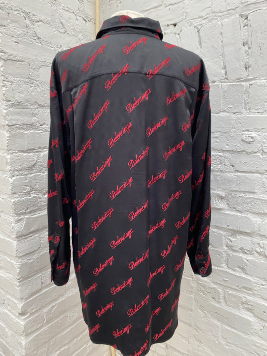 Balenciaga Black & Red Barrage Letter Logo Silk Shirt, 38