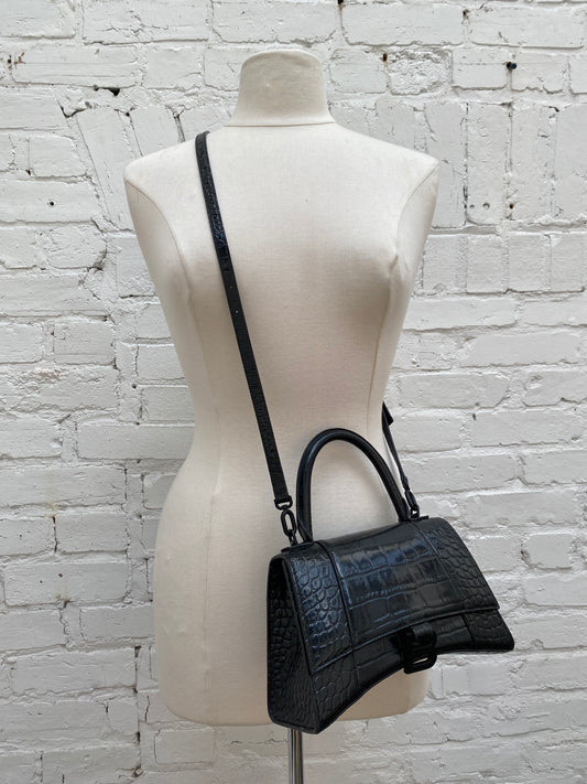 Balenciaga Black Croc Embossed Hourglass Bag BHW