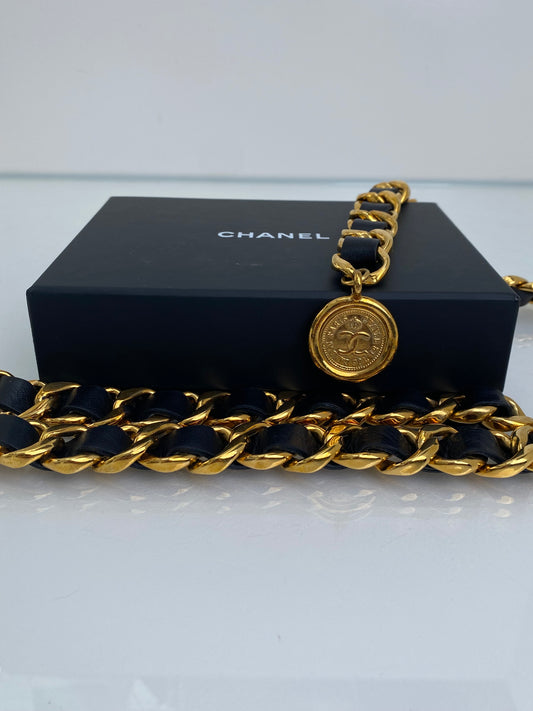 Chanel Black Leather & Gold Toned Chain Belt 2009