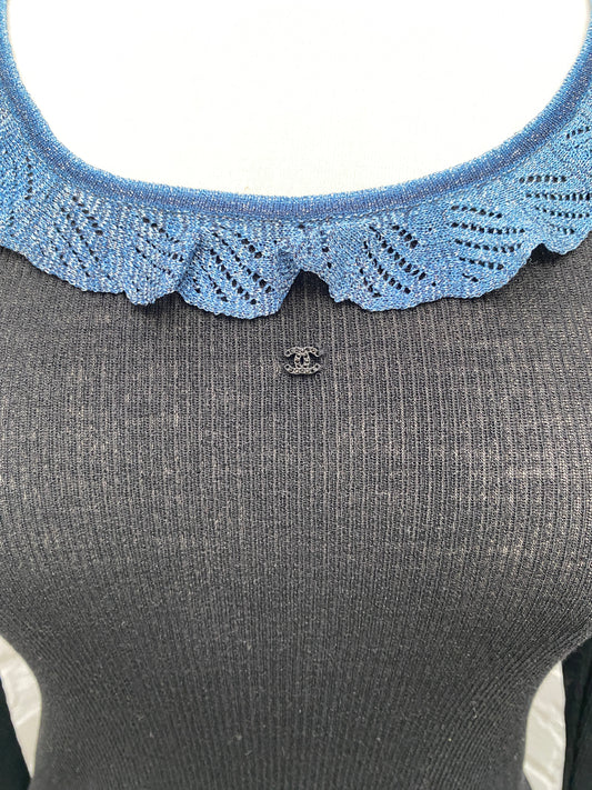 Chanel Black/Blue CC Logo Ruffle Dress 02A, 42