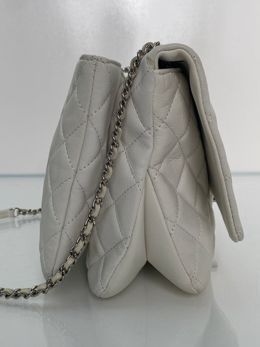 Chanel White Lambskin Quilted 3 Flap Bag SHW #19