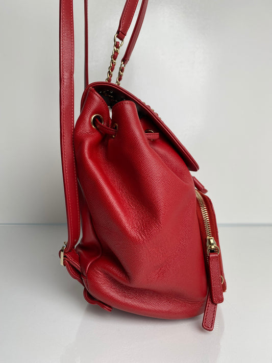 Chanel Business Affinity Red Caviar Quilted Backpack