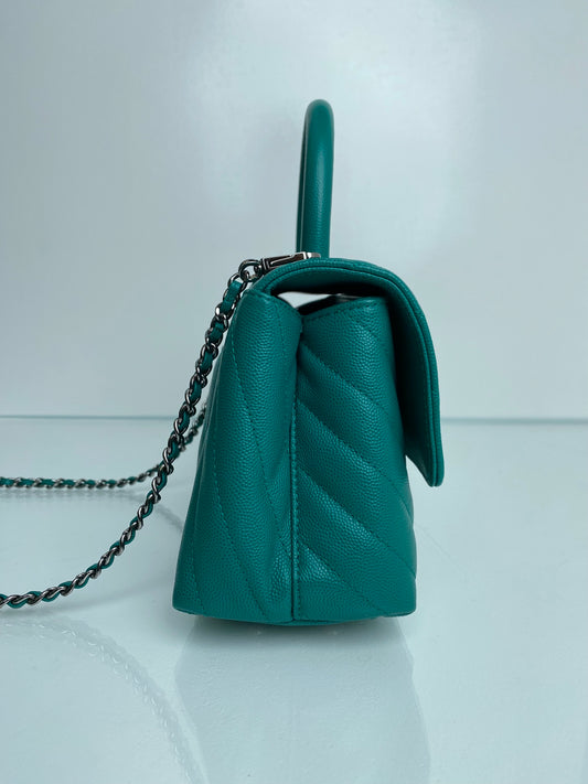 Chanel Small Coco Handle Dark Teal Caviar Leather SHW