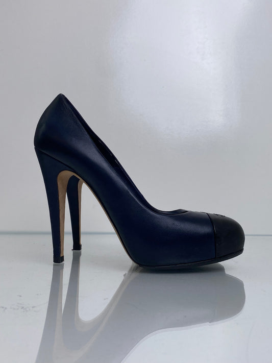 Chanel Navy & Black Toe Leather Heels, 39.5