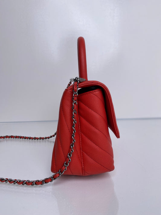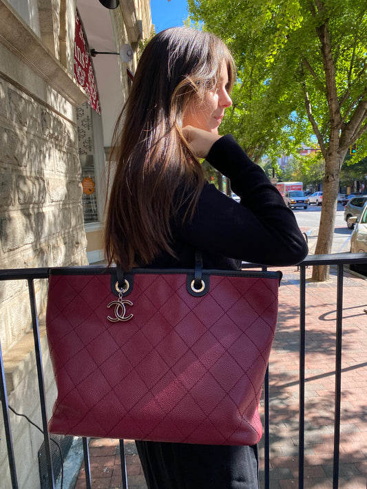 Chanel Red Chevron Lambskin Leather Shoulder Tote GHW