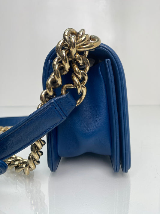 Chanel Boy Bag Blue Chevron Lambskin Small GHW