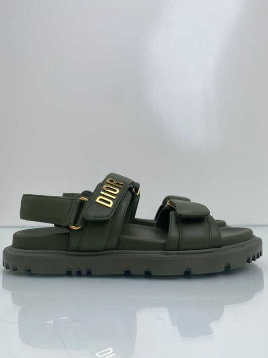 Christian Dior Dioract Green Logo Sandals, 39.5
