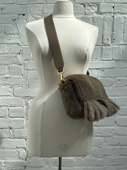 Fendi Grey Mink Fringe Baguette Bag GHW