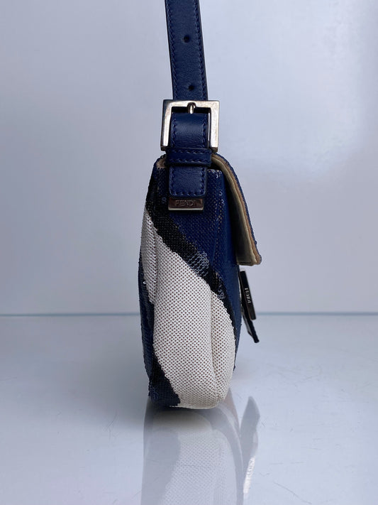 Fendi Blue, White, & Orange Zebra Sequin Baguette Bag SHW