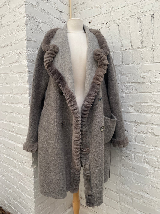 Fendi Vintage Grey Fur Trim Coat, 8, As is