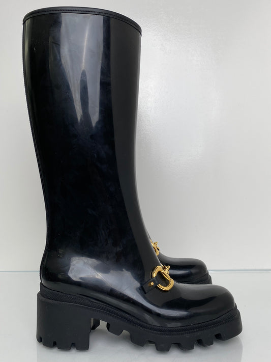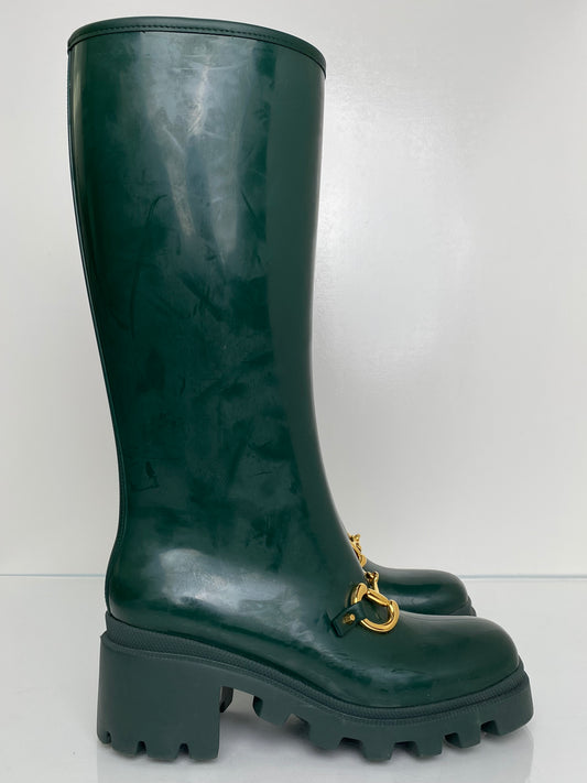 Gucci Dark Green Horsebit Platform Rainboots, 39