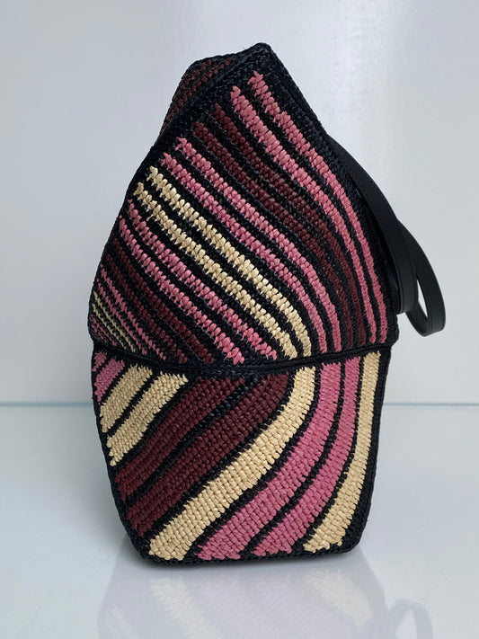 Loewe Pink, Black, & Tan Raffia Puzzle Fold Medium Tote Bag
