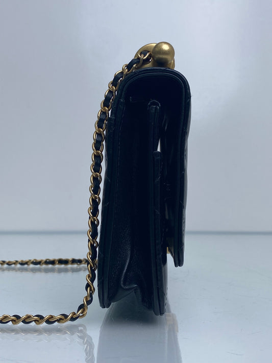 Chanel Black Shink Calfskin Quilted Timeless Wallet On Chain Bag GHW