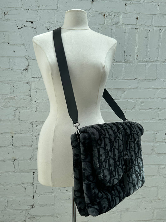 Dior Black & Dark Grey Oblique Shearling Saddle Briefcase Bag BHW