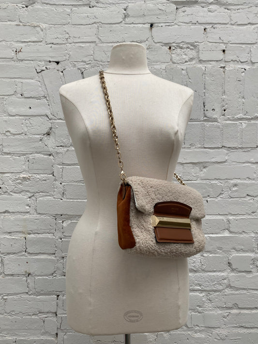 Jimmy Choo Shearling / Tan Leather Crossbody Bag GHW
