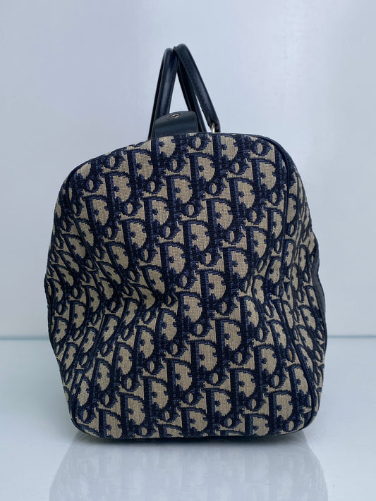 Dior Vintage Navy Oblique Boston Bag SHW