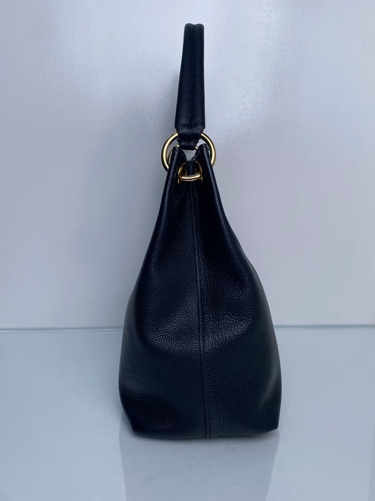 Prada Vitello Phenix Black Leather Hobo GHW