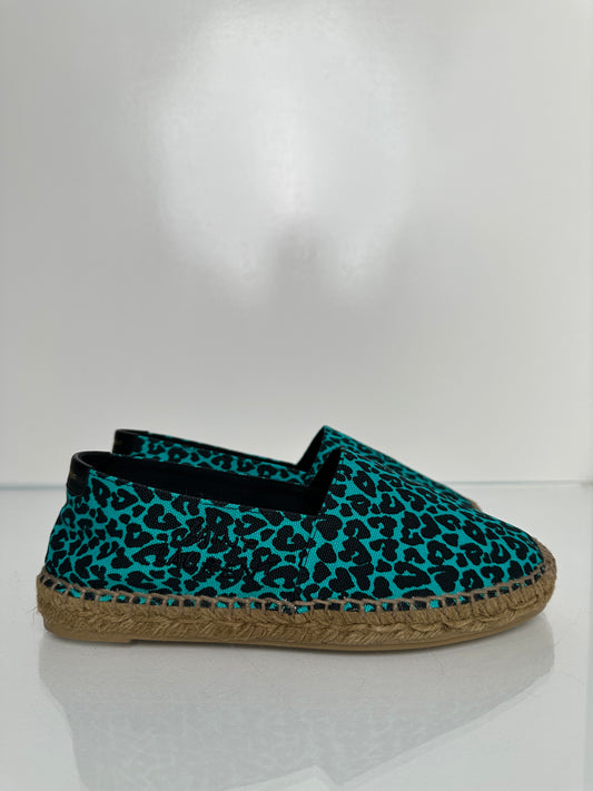 Saint Laurent Black & Teal Leopard Print Loafers, 36.5