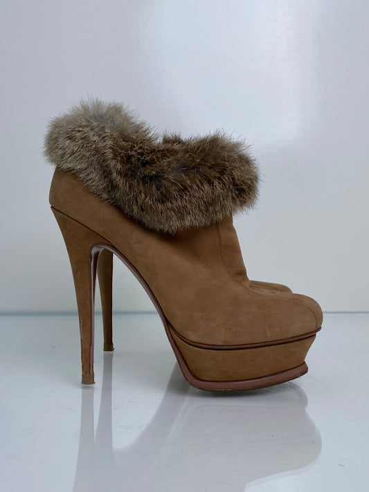 Saint Laurent Brown Suede & Fur Lined Heels, 38.5