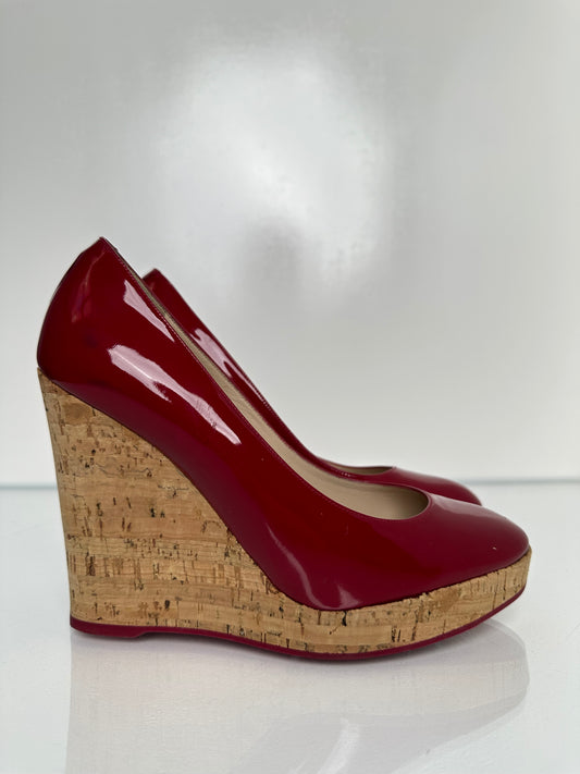 Saint Laurent Red Patent Wedges, 40